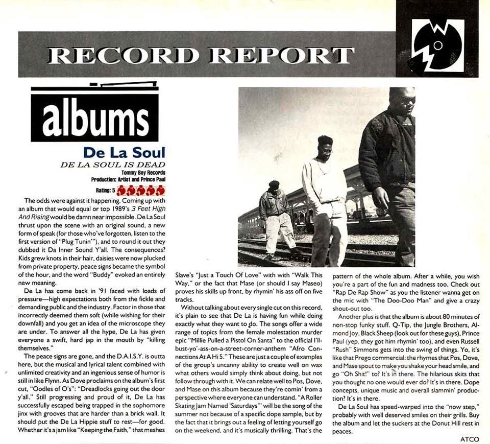 Listening to Prince Paul relate his experiences with Native Tongues on his essential retrospective podcast, What Had Happened Was (something I have to assume you’ve listened to in full already if you’re dedicated enough to read this shit, and if you haven’t, fuck is good with you?), what comes through is a magical, free flowing historical moment when an eclectic collection of characters were in the right place, at the right time in the studio together. They were collaborating in a loose and free flowing way, sharing lyrics, records, ideas, techniques and styles to build something that literally changed the culture. It kind of sounds like what it must have been like at The Source in those halcyon days. 3. De La Soul Is Dead – De La Soul
