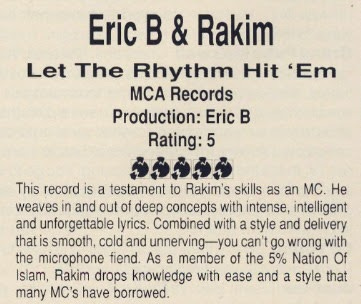 But it’s a 15 track album. 5-mics is not an award for good albums, or even great albums, it’s for perfect albums. Classic albums. Albums that change the world. You can’t have “Braveheart Party” on a perfect album. 12. Let the Rhythm Hit 'Em – Eric B. & Rakim