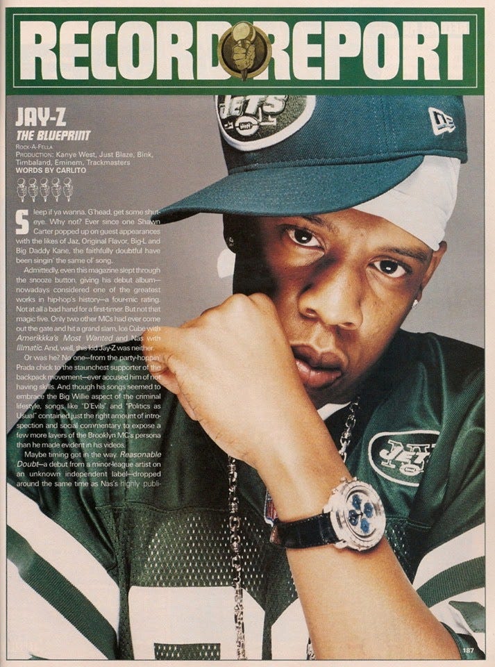 Marcy’s own Shawn Carter understood the formula to generate a 5 mic album was a tight tracklist, composed of a murderer’s row of culturally relevant producers, with carefully considered features and a heady blend of personal and commercial tracks. Consider Jay-Z’s album that preceded The Blueprint, The Dynasty: Roc La Familia. It’s a sprawling, 16 track album that some consider more of a compilation than a Jay-Z solo. But many of the elements that will elevate The Blueprint to classic status are present on Roc La Familia. Blueprint is, quite simply, an intentional act of myth making. It’s Roc La Familia edited by Gordon Lish, or the Mind Squad.
