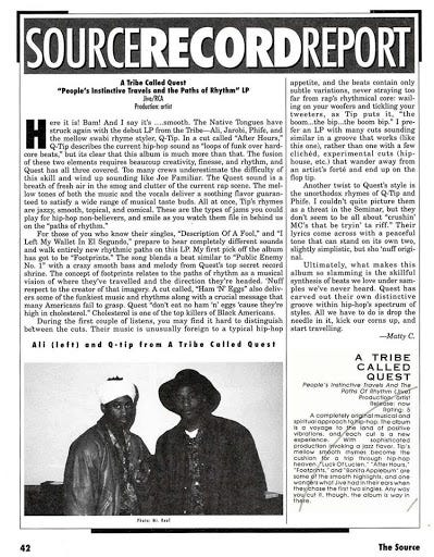 Many smarter and better informed critics have discussed and written entire books on Q-Tip, Phife Dawg, Ali Shaheed Muhammad and Jairobi’s accomplishment, so let’s try to consider the album through The Source’s lens.