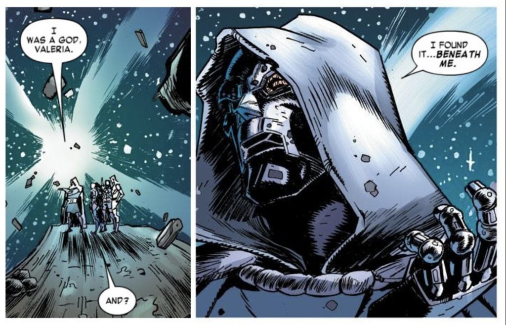 I watched him freeze roaches and bring em’ straight back to life – Viktor Vaughn I was a God, Valeria. I found it… beneath me. – Victor Von Doom