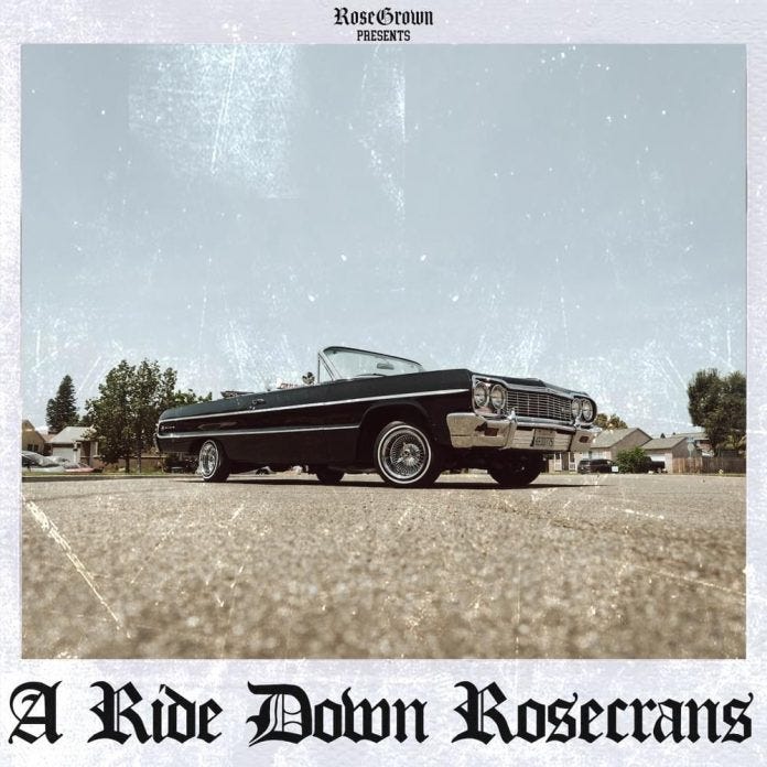 Today Rosecrans Avenue is still name-dropped by rappers, but now the name also refers to a website and radio show that covers those rappers. Founded by Los Angeles native Victor Ulloa in the fall of 2014, Rosecrans Ave anointed itself “L.A.’s illest Hip-Hop Blog” and began extensively covering and promoting artists from across the city. Victor became Rosecrans Vic, brought in Kali Shashati as a business partner and the website and brand have become a conduit for the city’s rap that’s as omnipresent as the road that inspired it. After adding a concert series, Don’t Come to L.A., to the dossier in 2018, Vic and Kali started a record label under the Empire umbrella called RoseGrown Records earlier this year and released their first project, A Ride Down Rosecrans at the top of December.