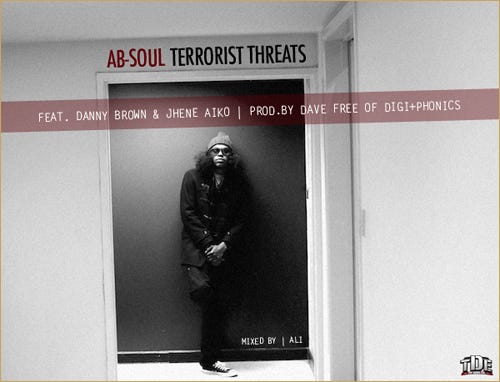 Download: MP3: Ab-Soul ft. Danny Brown & Jhene Aiko - "Terrorist Threats" MP3: Ab-Soul - "Black Lip Bastard"