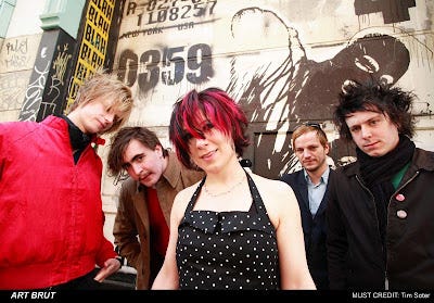 No self-respecting music journalist writes an article on the British five-piece, Art Brut without comparing lead singer, Eddie Argos' archly ironic demeanor to Jonathan Richman of the Modern Lovers. So let's just get it out the way. Yeah, Argos has that underachieving but highly intelligent, smirking in the back of the classroom vibe that made Richman endearing. But at this point, with their second album, It's a Bit Complicated, slated to drop June 26 on Downtown Records on June 26, its time to move past the simple Modern Lovers comparisons (or The Fall or Television Personalities...et al).