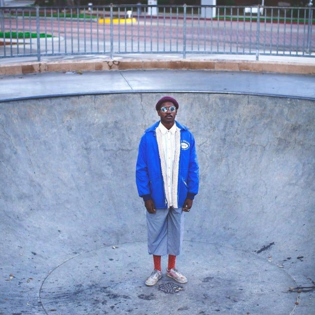 The plan was always to come back, though. The Lynwood/Compton area is the star at the center of Young’s solar system, the place where he was raised by his great grandma, played drums in the church choir and once had a pistol pulled on him. Its mangy greenways, vibrant strip mall signage and skateparks make up the video for “Controller,” which also features Young’s childhood friends, each drumming little easter eggs of color on his chest. These are the people and places that shaped him, and he hopes his newly formed solo career will give him the chance to “actually do something” in return (namely, he wants to create a non-profit for local kids who have an interest in the arts).