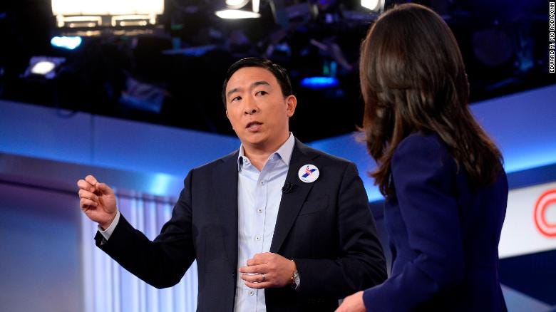 There’s at least a chance Andrew Yang isn’t a real person but instead a piece of stunt viral marketing created by Mike Judge. I think halfway through the first debate he’s going to say “Hey democracy, the jokes on you! Season Six of Silicon Valley is coming in 2020!” And will promptly jetpack out of the auditorium like Hank Scorpio. The special opens with the moderator asking him about his proposal to start campaigning via hologram, and shows him on stage with a Tupac hologram rapping alongside him. That isn’t like a cheeky throw away asshole joke. It actually happened.