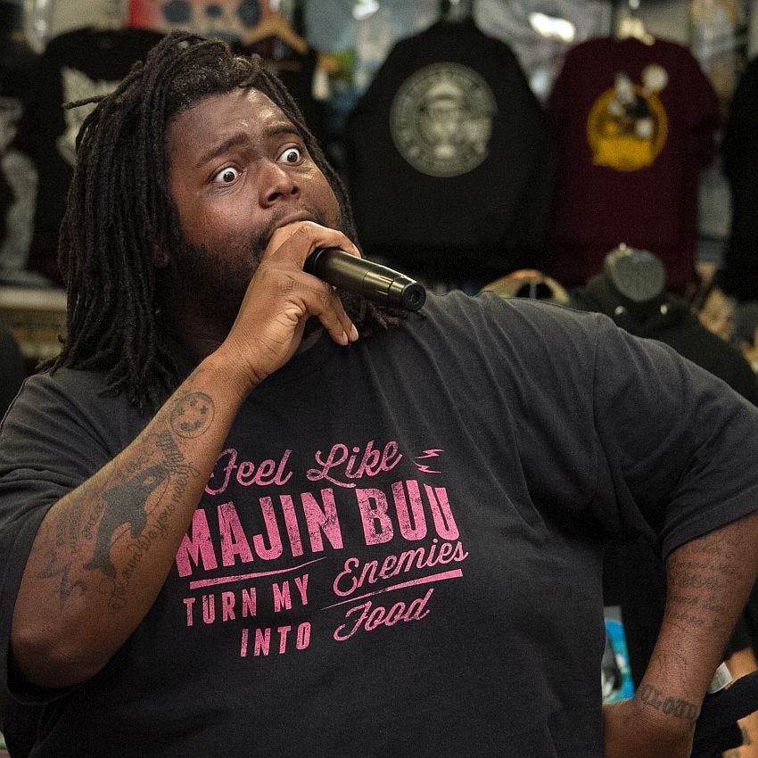 Noa James: Animé is for the fatherless. I have Dragon Ball Super playing in the background right now. It’s crazy; I learned a lot of viable lessons from animé. Some of them are filled with Buddhism and Hinduism and a lot of knowledge of – there’s another one called On the Flood – tai chi. On track 3, that’s a tai chi clip from the movie. Animé, karate flicks - they deal with peace and serenity and strength and power and knowing how to get that without destroying. Naruto – I learned what to do with my anger and my hate after he beat pain. He went to the waterfall and his anger asked him, “What do I do if you don’t have anger and hate no more?” Naruto was like, “What do you mean? You’re still me; we’re still the same person. You still live in me, you just don’t control me. You’re not overbearing or overwhelming,” and he hugged his hate. I was doing therapy for 10 years, and a therapist couldn’t even get that through to me, but fucking animé did. A fucking animé. Or Majin Buu hugging the blind kid. I don’t think people remember that scene, where Majin Buu was killing everybody and everything in sight, and he comes across a blind kid. The blind kid can’t see him, so the blind kid isn’t scared of him. This motherfucker Buu heals the blind kid so he can scare the blind kid; Buu heals the blind kid so the blind kid can get scared, but the kid cries and runs up to Buu and says, “I love you. Thank you.” That’s the moment when Buu becomes innocent Buu. You’re not born with hate, Bibidi is telling him what to do, teaching him hate, teaching him all these things, but once the act of love was shown to him, he changed. That’s what I get from animé; all of it.