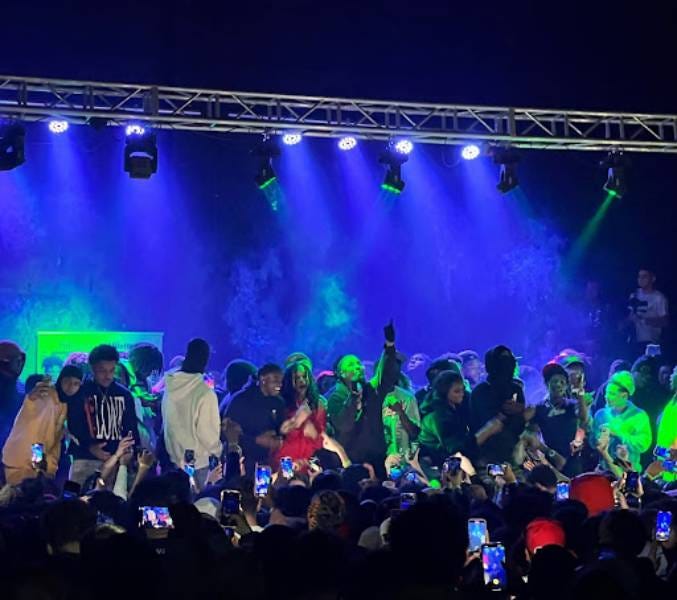 Verde Babii’s time on stage continued for only a couple more songs, adding “Ella Mai” and “Slo-Be Flow” to his short setlist. It became clear early on that even the listed openers wouldn’t perform for more than ten minutes at a time; everyone seemed to be getting paid to make an appearance, and with the ever growing number of artists and affiliates flooding the stage, every person wanted a piece of the action.