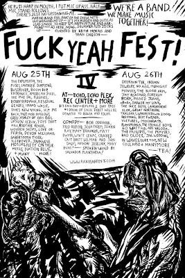 This weekend is the fourth annual Fuck Yeah Fest, two nights full of freaky, eclectic music determined to prove once and for all, that hipsters know how to fuck. Or something. I've never heard of 1/4 of the bands slated to play, but at the very least, they all promise to be interesting. I've done a very strange preview for the LA Weekly, breaking down the acts into three categories: Fuck Yeah, Fuck Eh, and Fuck Nah. Needless to say, the Fuck Nah category involves me drawing an analogy between Deerhunter and the first scene of Bill and Ted's Excellent Adventure. Does it involve a man named Rufus and/or the word "bogus?" You'll have to click below to find out.