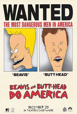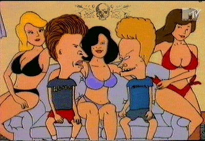 Drawing a ton of influence from Heavy Metal, Beavis and Butthead were always surrounded by amply busted women, none of which would give them the time of day. This was always a soft spot for me, as I'm sure it was for most men (whether we'll admit it or not), as our thoughts always seem to gravitate towards beautiful naked women. This was perhaps the most identifiable that Beavis and Butthead became in the series, as their quest for 'curly's gold,' if you will, was always met with frustration and hardship. They never get the girl. Neither do I. And I'd wager dollars to donuts, most men don't. We always want what we can't have. In many ways, that's what the American dream is all about: stuff and boobs.