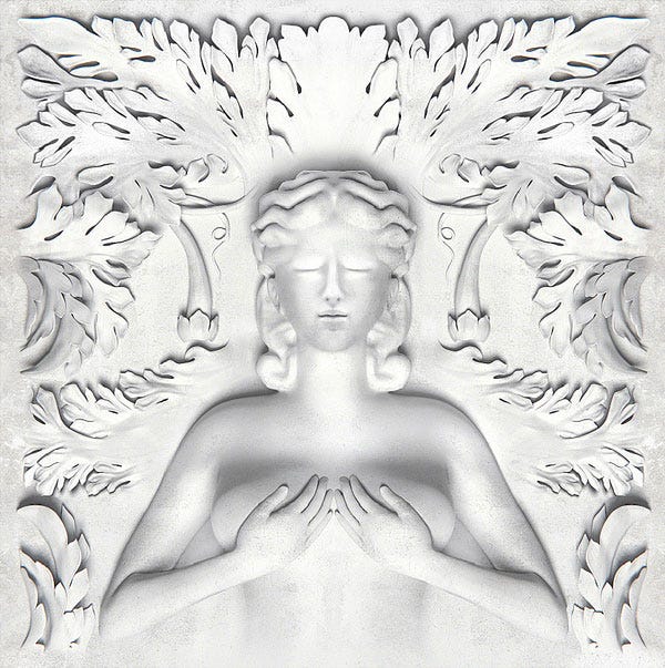 The story of Eliana Tranchesi closely parallels the life of Kanye West, who started making beats for local artists before getting a break with his own Chanel, Jay-Z. Now, almost nine years after releasing The College Dropout, Kanye opens his personal Daslu in Vila Olimpia. This is the album that Kanye West wants to listen to, and he doesn't care if you agree. He wants to blend his posse cuts into Hudson Mohawke beats with some Mannie Fresh thrown in; he wants to insert any Wu-Tang members that know how to reply to emails; he wants to resurrect the corpse of Mase.
