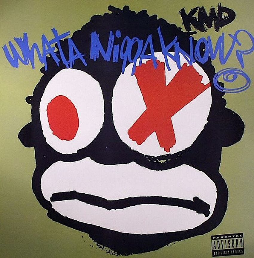 In April of 1994, Elektra Records released what was meant to be the lead single from KMD’s sophomore album, Black Bastards. It went by two slightly different titles. On the label itself, KMD entitled the song “What a Niggy Know,” a razor-thin fig leaf designed to appease radio programmers, but on the 12” cover, it was entitled “What a N____ Know,” and in a further act of provocation, the cover art depicted a full-size version of the Sambo caricature that MF Doom (Daniel Dumile) — back then still known as Zev Love X — had created for the group’s Mr. Hood debut in ’91.
