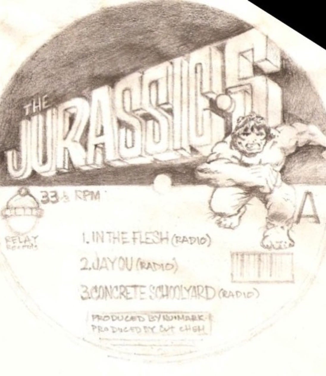 Cut Chemist’s original pencil sketch for the Jurassic 5 EP label