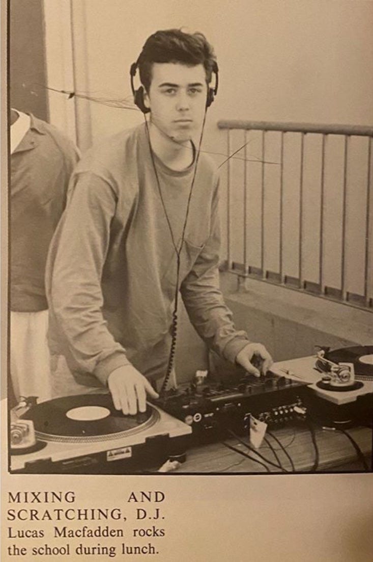 Young DJ Mystro sometime before choosing from between two potential handles, Cut Chemist and Cut Librarian