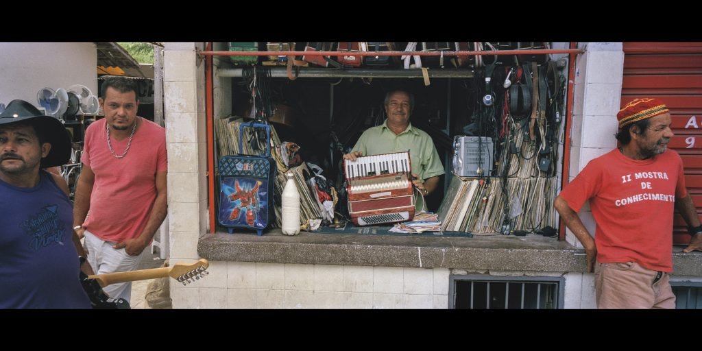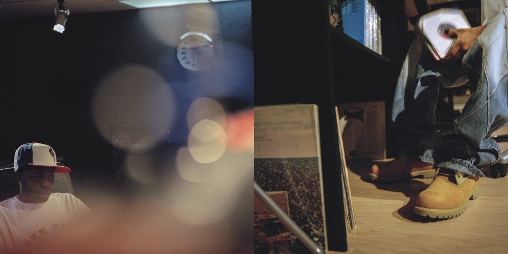 And so anyways, we get halfway to Brazil, and he tells us he has an ounce of weed taped to his fucking crotch. And we’re just like, “Oh my God, dude.” So bad. So, for the first couple of days, Dilla didn’t leave the room. And then on the third day, I think, we had him out of the room, and we got him down to a place very close to where we were staying. Actually, to this record store, a kind of famous one, Discomania. And he went digging. He and Otis went digging. Took those photos. Took that photo.