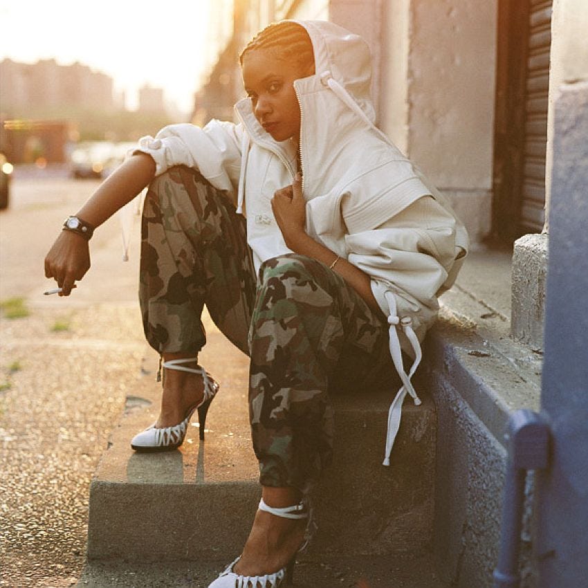 This story begins halfway across the world. Grae’s Earth-1218 birthcert reads: “Tsidi Ibrahim. Birth place: Cape Town.” The daughter of legendary South African jazz musicians Sathima Bea Benjamin and Abdullah Ibrahim, Tsidi was transplanted to New York at just three months old amid racial tensions sparked by the 1976 Soweto uprising. Raised on profound amounts of music and stand-up comedy, she emerged in the mid-1990s under the name What? What? to embark on her singular rap odyssey.