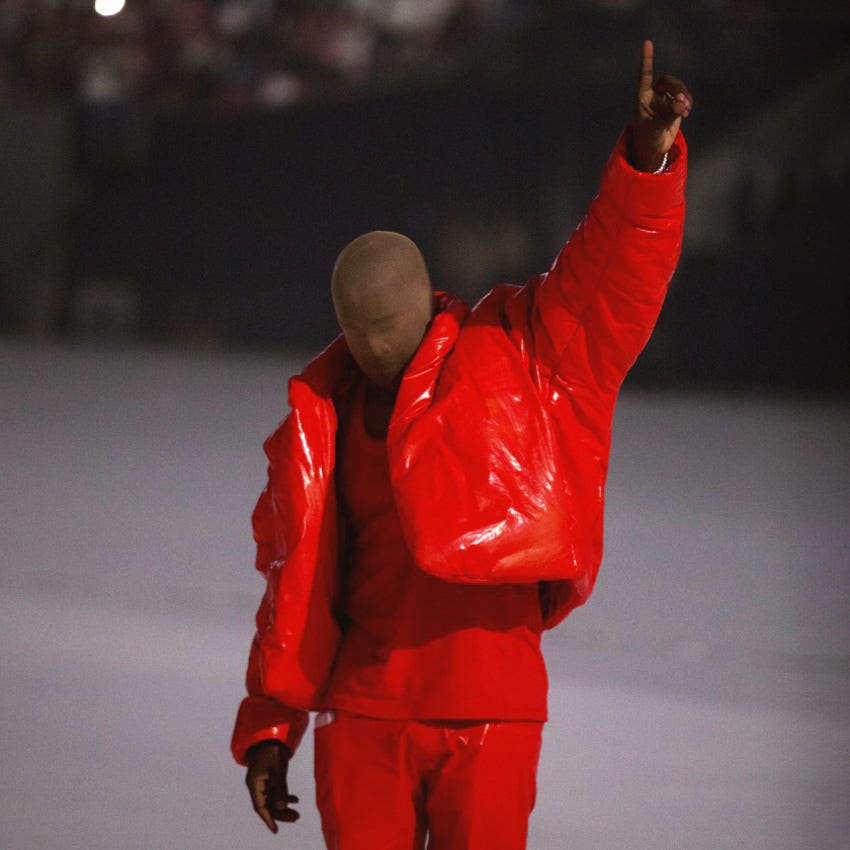 During the time leading up to the actual performance, Twitter and r/Kanye were two anxious subjects, questioning the itinerary like rabid ants. Comments ranged from cocaine optimism at having the opportunity to be graced by their idol’s sonic manna, to manic dysphoria at the possibility that Ye would back out on his promise and violate this social contract. And sometimes comments verged on suicidal ideation. “If he doesn't drop Donda it's going to be my 13th reason,” one Reddit user exclaimed. Luckily, the moral support surged just as hard as these neurotic, fatalist tendencies. “I believe this is the real deal this go-around,” another user said. “Also if you need anyone to talk to we got your back, buddy.”