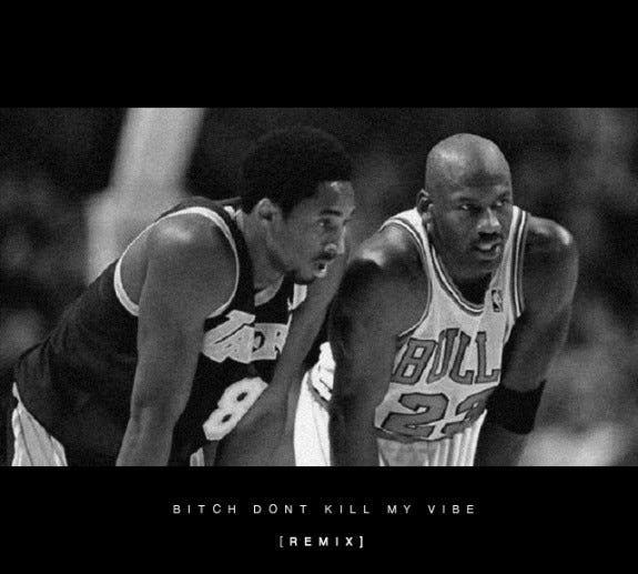 Complete with inaccurate artwork comes the "Bitch Don't Kill My Vibe" Remix. Jay-Z has entered the wobbling Wizards part of his career, still capable of averaging 20 a night but a shell of his former self. Forget being renegaded. The Internet always made too big of a deal about that. Eminem got him, sure, but just barely. This is...not good. I have sympathies for Jay. I've started playing hoops again and your body often doesn't match up with your mind's memory of your vintage moves. The slash to the hoop gets stripped. You suddenly need to box out lest you get out-leaped. It's frustrating and it happens in rap. Jay is several steps slower to Kendrick. In his mind, he's reverting to the fast rap flow he picked up from Kane and Jaz, but his tongue doesn't twist right. The thing about Jay is that he was always silky-smooth. Rap as sleight of hand. Here, he seems clumsy, practically stumbling over his words. Up in the clouds? Me and my spouse? Somewhere Guru is spinning is his grave remembering Deck's verse from way back when.