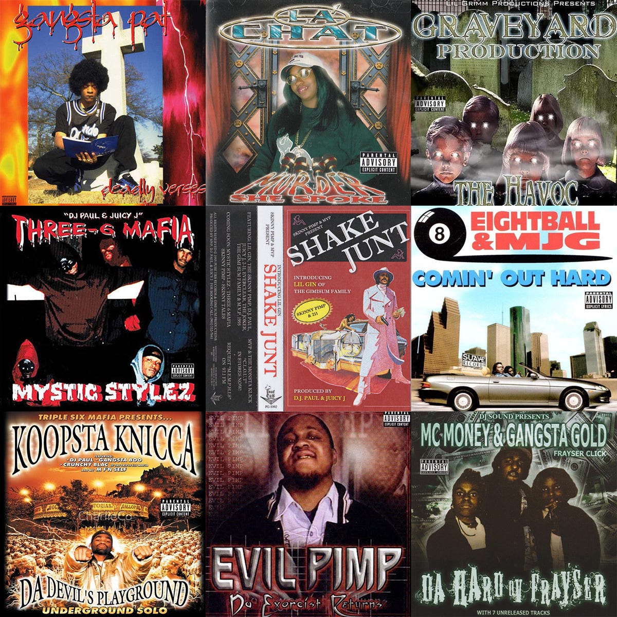 Here are albums that I’ve listened to and I think are a good representation of this time, and most key contributors. European collectors grabbed everything they could get their hands on and uploaded really obscure homie/ neighborhood tapes, so there is a huge amount to choose from, and a lack of mainstream coverage or discussion means there is no real consensus on what is and what is not essential. Because of this, I listed the 10 or so most popular tapes and 15 tapes that I’m partial to that are a fair sample Memphis Underground’s various sounds. It's in no ways a complete guide to every tape, there are literally thousands. Feel free to correct anything or suggest more essential tapes I might have missed.