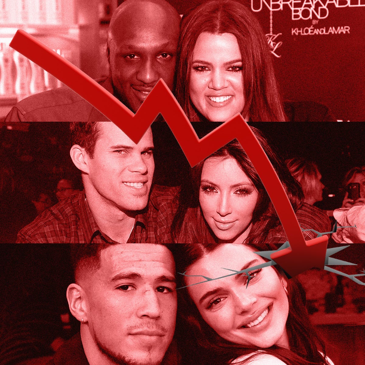 There are no stats to correlate Travis Scott’s relationship with Kylie Jenner and the tragic events that occurred at 2021’s Astroworld Fest – or Kanye’s relationship with Kim Kardashian and literally almost every second since that ended. But with the NBA athletes (nearly all of whom were active in the league when their respective relationships began), we have a decent sample size of measurable, empirical on-court performance that can either "prove" or "disprove" the curse’s existence. It’s also a varied subject pool. The Kardashian selection of athletes very much mirrors their ascent in culture: they began dating benchwarmers, veterans and role players like Kris Humphries and Rashad McCants, and slowly rose to the upper echelons of the league with stars like Ben Simmons and James Harden.