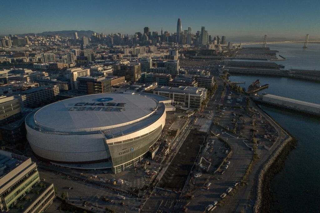This is how the Times portrayed Oracle Arena in Oakland, in its now infamous profile of Lacob: “The Arena...in a vast parking lot beside a highway, was outdated. Its corridors were narrow, its catering facilities rudimentary. It didn’t have rooms that could be leased for corporate meetings……(It was) austere and cramped.” The Warrior’s new arena, The Chase Center, a 1.4 billion dollar privately financed arena that boasts office buildings (the two attached Chase Center Towers are leased to Uber for the next 20 years, and serve as Uber’s headquarters, the arena’s anchor tenant) and commercial space (But nearly 200 less seats), is the kind of mixed use cash/land grab ruthless 20th century capitalists like O’Malley couldn’t even fathom.