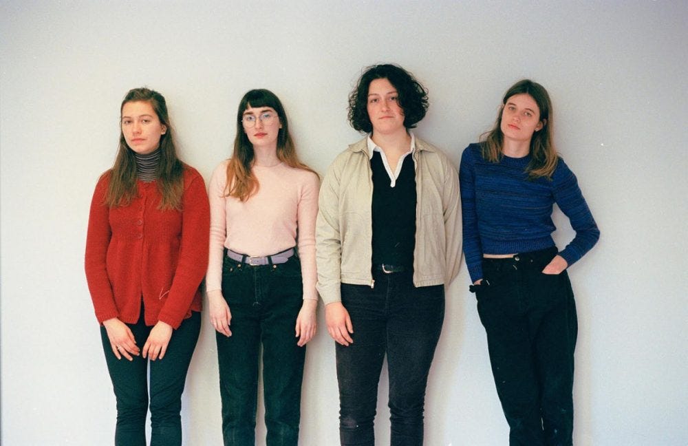 All of the lyrics on Almost come from Peppet, and the themes once again circle romance, fleeting feelings, and a sort of elegiac remembrance of things that have passed. On the poppy and methodical “General Electric,” she sings, “I wanna be just like the girls you like/ I want to be what you fantasize,” before a catchy toy piano emphasizes what’s been lost. With the lyrics circling so close to Peppet’s headspace, it’s up to the rest of the band to convey meaning from instrumental arrangements. “I don’t necessarily feel the same things that Spencer’s feeling at any given point in a song, but I can sympathize with them and because I know Spencer I can guess what she’s talking about. That’s the fun part: trying to guess what she’s talking about,” drummer Micaela Adams says. Adds Weir: “I’m not a super lyrically driven person, but I can relate to all of the songs. We’ve been able to all make different worlds for ourselves within each song and our relationships with the arrangements.”