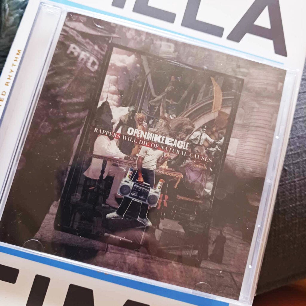 That didn’t stop Mike, who promoted the show in gracious and gregarious hustle mode, from showing us love when we turned up. He even slid me a copy of Rappers Will Die Of Natural Causes, which I still have despite three moves – undoubtedly because I was blogging about music and that’s the sort of thing artists do to get their names out there. I liked the album.