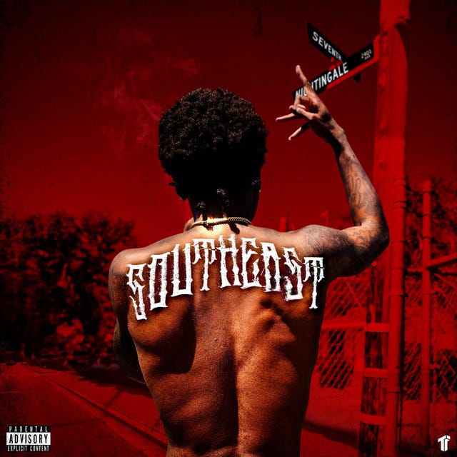 Southeast is a horror film on wax. Young Slo-Be says it himself on “Rock Out”: “Last skit was a movie, n***a, that part.” From the cover art to the instrumentals, Slo-Be creeps around the corner of Seventh St & Nightingale Ave. His lyrics itch for self-indulgence and condemnation through lust-driven R&B samples and murky bass drum hits. The soundscapes crawl like spiders, nimbly arpeggiating and oscillating to match your blood as it curdles through your veins.