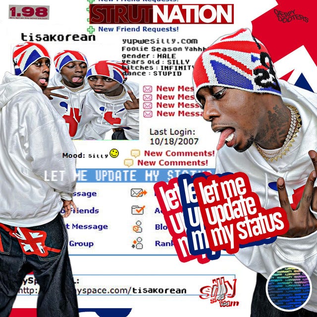 I understand that phone calls have increasingly gone out of style. However, if there’s one record that could conjure the ring and text tone nostalgia of study hall days, TisaKorean’s Let Me Update My Status is that final monument of a bygone era. In 2021, Mr. siLLyfLow and pResiLLy dove into snap and crunk, whereas LMUMS is a full-on marriage of the two artforms. It exemplifies TisaKorean’s viral unpredictability to veer into the far corners of Y2K sounds. And while the tape is rife with LimeWire-esque song titles and endless call-backs to the days of tall tees and backwards fitteds (and a literal call to action on “HeLiCoPtEr sWaG Pt4.Mp3” to “wave the tee around”), TisaKorean avoids the pitfalls of nostalgia-bait by mutating instead of shamelessly retreading. Rather, he embodies a pioneering spirit that even Soulja Boy could be proud of. He pulls this off on “SiLlY MoAn.mp3,” where the digital trilling of the snap beat and his crescendoing horniness exist in perfect harmony. Meanwhile, the relentless beeps and pings of “StUnNa sHaDeS.mp3” recreate the rambunctious bedlam of a crunk anthem – albeit with an electronic coldness that feels beamed-in from the future.