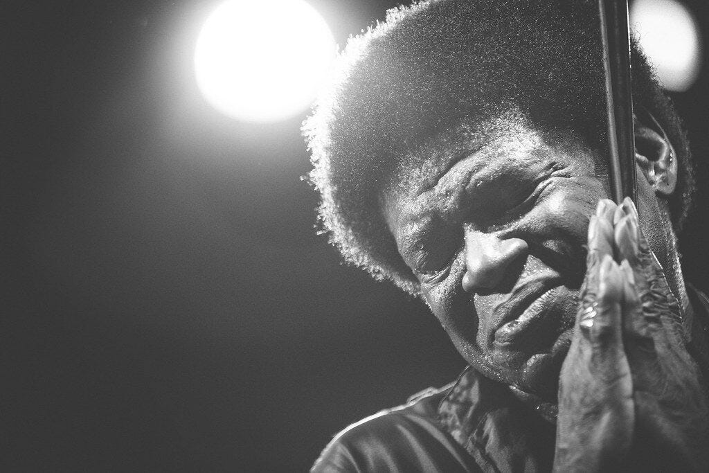 They’re young guys and they are eager to play. They are nice, warm young men that really want to play with me and they show me that they’ve got love. I will say, yes, that they’re not as strong playing for me as the Menahan St Band, because they [the Menahans] were the group who wrote the music behind me. But these young guys, they’re determined, they want to play with me, I’ve been on tour with them, and they’re very, very good. I can feel a lot of improvement, but I think the more I’m around them, the more they start to grow into what they already know. They’re a little hesitant, a little afraid; because they sometimes don’t know how I’m gonna come out when I’m on that stage. And they have to try and stay up behind me and give me that dynamic that I need. Because once I’ve got my spirit open, I’m expecting the band to be 110 percent behind me. My spiritual moments, my joyous moments, my hurt moments: I put everything out on the table, and I want the band to be able to say, “Wow. Charles is in his moment. We’ve gotta be there with him!” When I say to break it down I want them to break it down and gee things up. If I say for them to stop on a dime, I want them to stop on a dime. And then sometimes I want to hear just the beat so I can hit my heart and really talk to the public. I sing the songs the way the audience want to hear it, then I break it down and that’s when my spirit comes up to let them know where I’m at.