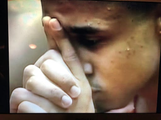 23:16: One of my favorite parts of the NBC broadcasts are these pre-taped interviews they’d run with coaches and players, they would then run in game in a little window in the top left corner as play went on. They would set the subject against this ominous black background that made whoever was the focus look like Freddie Mercury in the “Bohemian Rhapsody” video.