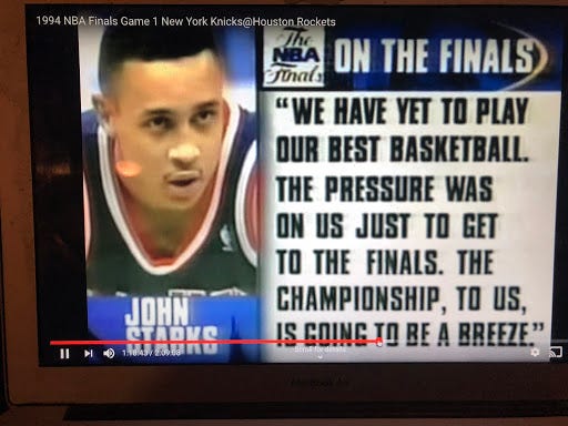 6:18: Marvelous just singled out the matchup between Vernon “Mad Max” Maxwell and John Starks as the most interesting in the series. As the kids would say: Following.