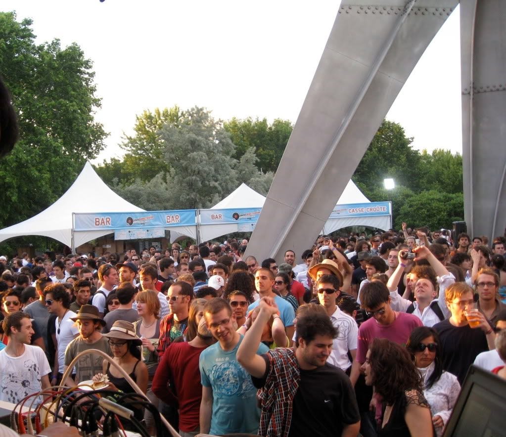 Sach O avoided sunburn while drinking copious amounts of white wine. He’s going to tell you about it. If you see DJs frantically performing reverse rain dances in Montreal, you know Piknic season has arrived. The climatically superior brother of Igloofest, Piknic Electronik is the city’s 21st century bread and circuses: a weekly, mainstream, outdoor event featuring world class DJs and local talents spinnin’ a few choons for an easy-going audience of hungover ravers, happy families and everyone in between. Neither pretentious nor pandering in vibe or bookings, it’s pretty much the single coolest thing to do on a Sunday in Montreal, rivaled only by the long running Tam-Tams. I tend to alternate between the two depending on who’s playing and the heartiest locals and tourists have been known to attend both. Of course, as in all things Montreal, Piknic revolves around the whims of the weather as torrential rains can occasionally derail things. They won’t actually cancel the event unless it’s truly hopeless but dancing in the sun beats dancing in the rain any day of the week and poor weather was enough to prevent me from catching House don Julio Bashmore the previous week. Thankfully, the skies were clear this week and by 3PM, the space was slowly filling up with a mix of the party-hearty and not-quite-partied-out, all carrying picnic baskets. Except us. In all fairness, Piknic’s got a great alcohol policy: you can bring in a reasonable amount (a bottle of wine, a few cans of beer) as long as you ALSO bring in food. Unfortunately, having just eaten an epic Fathers day brunch, my brother and I had neglected our usual arsenal of sandwiches to go along with the vino and were required to purchase a meal voucher. No biggie, but for future reference: they’re not kidding about this being a picnic so for maximum enjoyment and minimal hassle, pack a substantial snack along with your tasty refreshments.