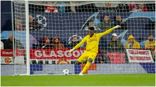 On paper, his league stats really aren’t that bad. For the Premier League, Onana is tied for the most clean sheets (5), he saves over 70% of shots on goal, behind only Liverpool’s Alisson Becker and Newcastle’s Nick Pope, and he’s in the bottom five of goals conceded per 90 minutes. Again, the only keeper not giving away at least one every 90 is Becker. Statistics are never enough to satiate a rabid fan.