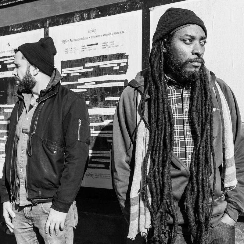 Curly Castro: We've been friends for a long time. We actually met at kind of a rap battle, actually. It was different rounds, but we didn't actually have to battle each other. But it was a rap battle, it was like a rap Olympics competition. PremRock: It wasn't really head-to-head competitive, but anyway, we tied, and we had a, "If you can't beat them, join them" mentality, I think. Which is smart, as it turned out to pay dividends down the road. We were both big fans of Elucid as an artist, obviously as a rapper, but we were definitely really interested in hearing what he would do as a producer. And so, we both hit him up on separate terms to get some beats, and he was happy to oblige. And I knew that I personally had kind of hit a wall with what I wanted to do with my projects, and I knew Curly had his own cache. So, I hit Curly up and I was like, "What's going on with your project?" And he was like, "I’ve kind of hit a wall, too.". Curly Castro: Yeah. We had actually set out to make these separate EPs, and when I heard the batch of beats that he had, mine were starting to lessen. So we put ‘em together, and began to work as a duo. PremRock: I can say the same, actually. I heard yours, and I was like, "Oh, you have got the best. Okay." Curly Castro: So then we just came up with it. Not to be cliche, but it was like an "aha" moment. There were lightbulbs over our heads like, "Oh, we should do a whole project together." At that point he had eight beats, I had eight beats, and we just needed to be inspiring each other with each other's beat packs do a whole LP together. We told Elucid, and he was down.