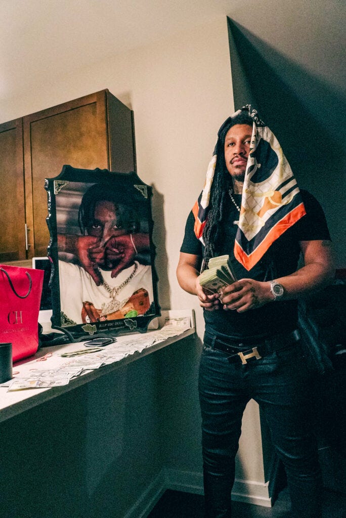 Virality has treated Skrilla nicely. His streams have gone up, and so has his feature price. He’s always been interested in fashion, and now he has a chance to put a line together featuring his original designs. It’s also made it harder for him to go outside. “We could go to the fuckin’ hospital right now, and the old people would be like, ‘Yo, that’s Skrilla!’,” he says. Part of him wants to leave the city. But he hates L.A., the place where so many of his peers in the entertainment industry end up. “Everybody’s a con artist in LA,” he says. Besides, he has trouble sleeping on the road. “I don’t know why. I just miss home.”