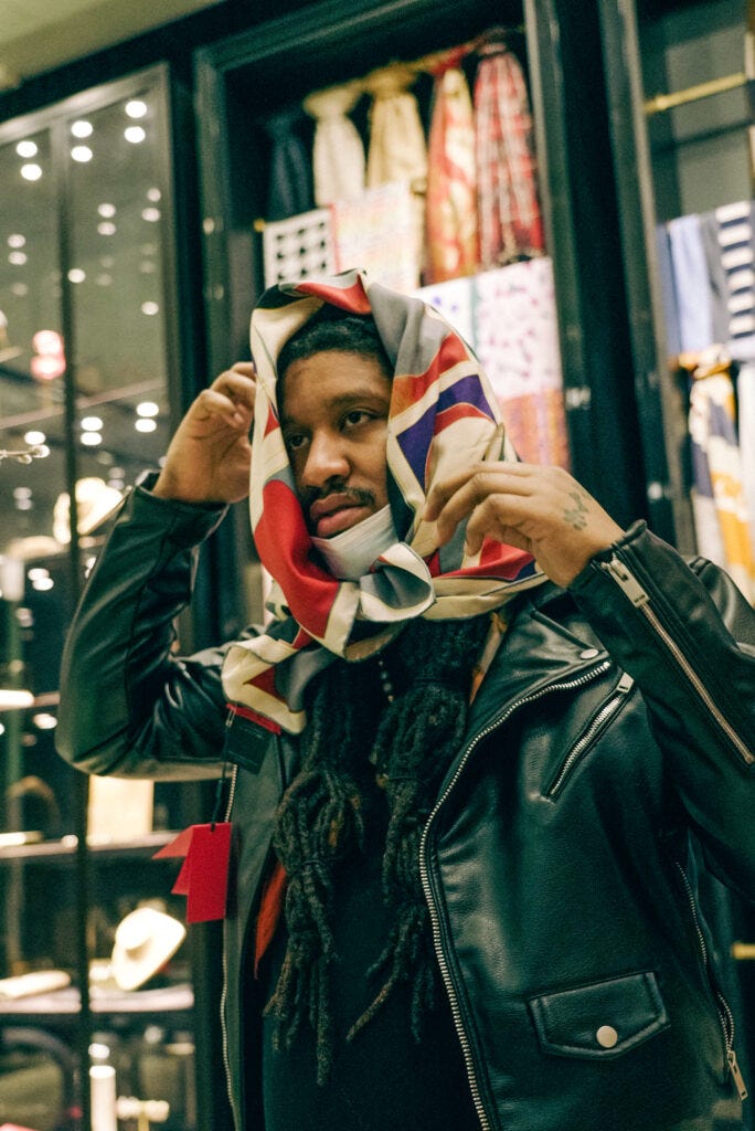 “This is the white people part of the mall,” Skrilla tells me, vaguely gesturing towards a nearby Pottery Barn, or maybe leaning on an unseen force for support. We’re in the white people part of the King of Prussia Mall, to be exact, which Wikipedia tells me is the fourth-largest in the nation and which my eyeballs tell me has emerged from the late-2010s mall apocalypse miraculously unscathed and unbesmirched by vacant storefronts and vape shops. I’m here with him, his brother Von who also serves as his manager, my photographer, and my photographer’s friend, a college fashion designer who just came through to hang out. We’re accompanying Skrilla as he shops for a new Hermes scarf, which is a thing he needs because he’s going to LA the next day and his old Hermes scarf is old.