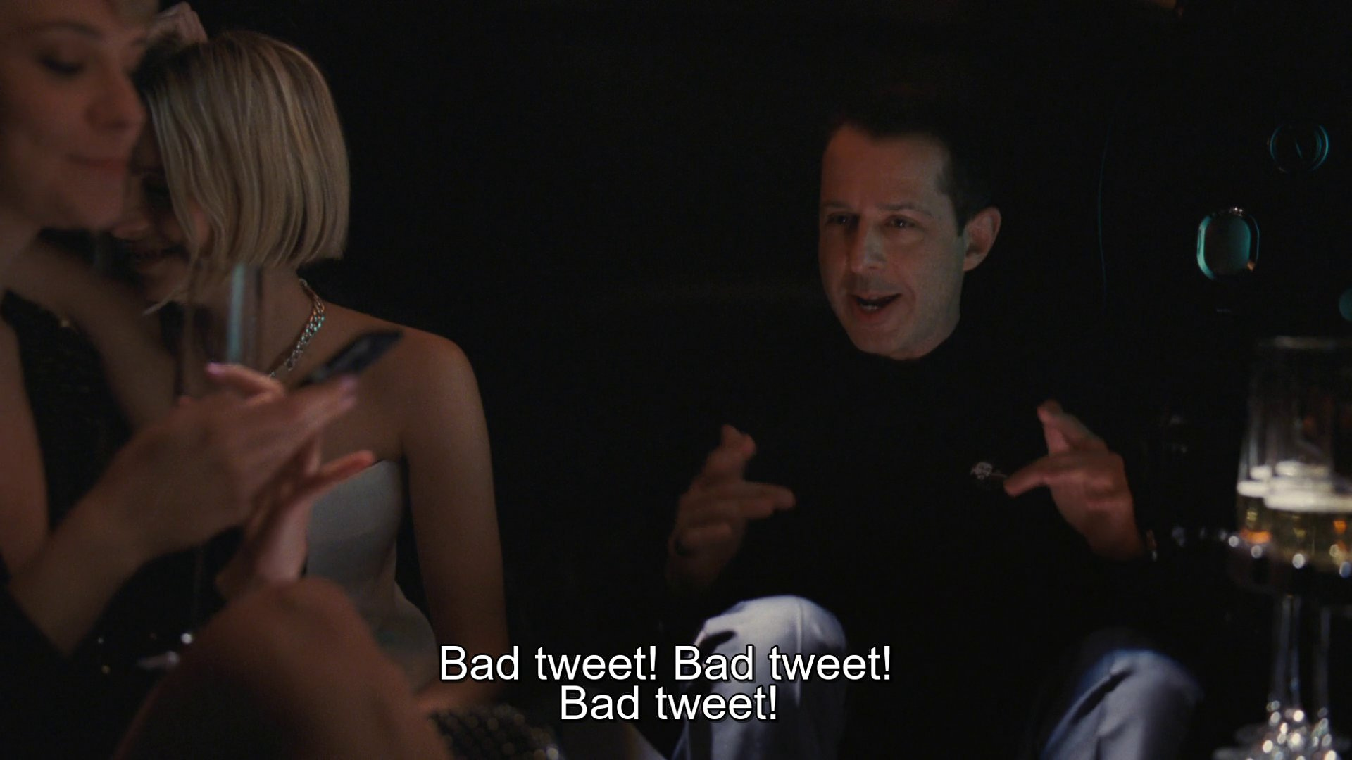 I think “Good Tweet, Bad Tweet” is very much tied to the Ziwe device. They are both kinds of games, or torture instruments that allow Ken access to his Icarus instincts. He loves the waxen winged rush of the idea of who he could be, with the torture of being reminded in carnal and bloody fashion who he is.