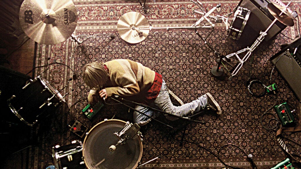 He started Nirvana as something that was anti-yuppie, but now yuppies were buying Nevermind for their kids in hordes. Kurt dived deeper and deeper into heroin in order to zone out from this unbearable noise, as well as to get some relief from destabilising stress-related stomach cramps. By choosing to tap into these isolating emotions, Last Days avoids the usual underdog-makes-it-big cliches music biopics force down our throat.