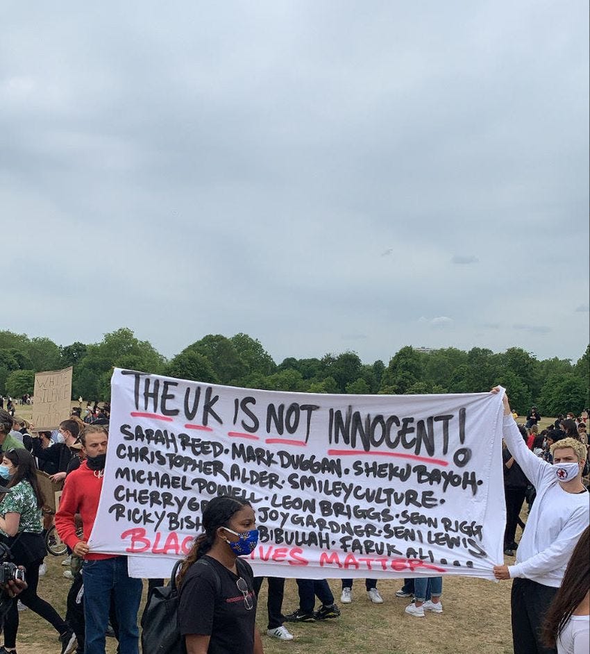 But this is what we call “covert” racism: The British Empire, our involvement in the Atlantic Slave Trade, the Windrush scandal, the 1985 riots, Black women being more five times more likely to die during complications in childbirth, Grenfell Tower, Kelso Cochrane, Stephen Lawrence and the MacPherson report, Mark Duggan and the 2011 riots, BAMEs dying at disproportionate rates to COVID-19 complications, Sarah Reed. And more recently, the gross incompetence in dealing with the blatant assault of Belly Mujinga, a TfL worker who was spat on by a passenger claiming to be COVID-19 positive and died shortly from COVID-19 related complications.