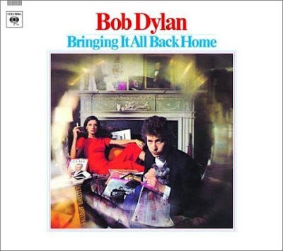 On Bringing It All Back Home, Dylan basically invents what it means to be a great modern song-writer, scribing phrases capable of evoking myriad emotions in each listener, each cryptic turn able to be interpreted in a thousand different ways. (Of course, there are some tragic downsides to this,namely Incubus) Inspired by visionary poets like Arthur Rimbaud and Allen Ginsberg, Dylan writes lines that don't make little literal sense yet seem divinely ordained, with a brilliant method to their madness.Inevitably, a whole lot of people reading this are already major Dylan fans, so in some respect I'm preaching to the choir. But if by chance oldies radio has left you with the mistaken notion that Bob Dylan is all oldies station staples like "Blowin' In the Wind," and "The Times Are-A-Changin," this record should change your mind. And if nothing else it won't awkwardly name-check Alicia Keys in its first two minutes.