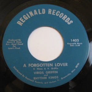 I discovered Slowdive's Souvlaki years ago in the middle of this disliked season and the album quickly bullied it's way into heavy rotation during my commutes. It was perfect theme music for my nightly staring into depths of pitch black nothingness through un-kept bus and train windows. Even if you don't have the pleasure of enduring treks on public transportation, the lush and hazy atmospheric production on this song (and album, with Brian Eno handling a few selections) is top tier background music for countless hours of hibernation. The slurred ambient soundscape is guided by thick layers of guitar patterns that are distant and distorted but somehow remain melodic. Above the dense riffs are obscured murmurs of Rachel Goswell, whose words fade into the accompanying elements, leaving the lyrics (for the most part) indecipherable. – Note D 7. Virgil Griffin & The Rhythm Kings - "Forgotten Lover"