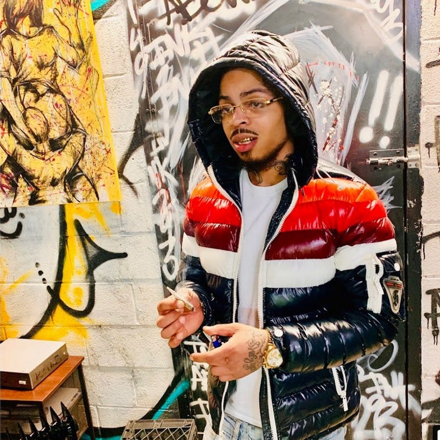 The rest of the tape features a Brooklyn style drill beat, mafioso sounding Michigan beats with the violin strings and jumpy Energy bass patterns, and a few other tricks up his sleeve. You could say he’s a good storyteller, because of course he is, but it’s more than just the plotlines. There’s sidequests, character development, and all the decision-making and moral quandaries are wrapped up in neat 4-line packages that bring you directly into the cylinders firing in his mind. It’s not just what happens, but how it happens, what it sounded like, and what he thought about while it was happening that makes Pap stand out. He’s cooking a fresh batch in the kitchen but all he can think about is “deep down I’m mad I just bought this fit.” His internal monologues are self-aware with a sly wit and a disturbing bent. Just like people love those true crime and serial killer shows, listening to Pap’s music is a look inside the disturbia informed by 400 years of cruel American policy choices to help the powerful make money off fucking up poor people’s brains. It’s not necessarily all true (and in fact, very little of it likely is given its often absurd stories), but the character he plays in his music can tell us a lot about the world we experience around us. We see all of these dynamics playing out in real time both in his music, and the situation he finds himself in right now, back behind bars after just a taste of freedom.