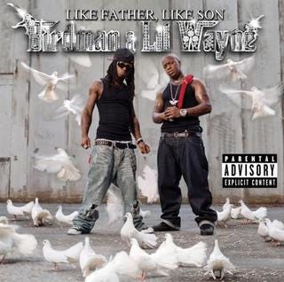 Wayne has turned himself into a pretty great rapper, one who if given a great beat will consistently turn it into a great song. And Like Father Like Son, has more than its share of great beats, ones that sound more like early 90s West Coast G-Funk than the stuttering cheap synth beats you'd expect. The comparison becomes more apt when Daz and Kurupt drop by for the bangin' "Cali Dro." This album might not be a classic, as it's plagued by cliched skits and plenty of filler (19 songs, 1 hour and 10 minutes), but if you go song by almost anything else.