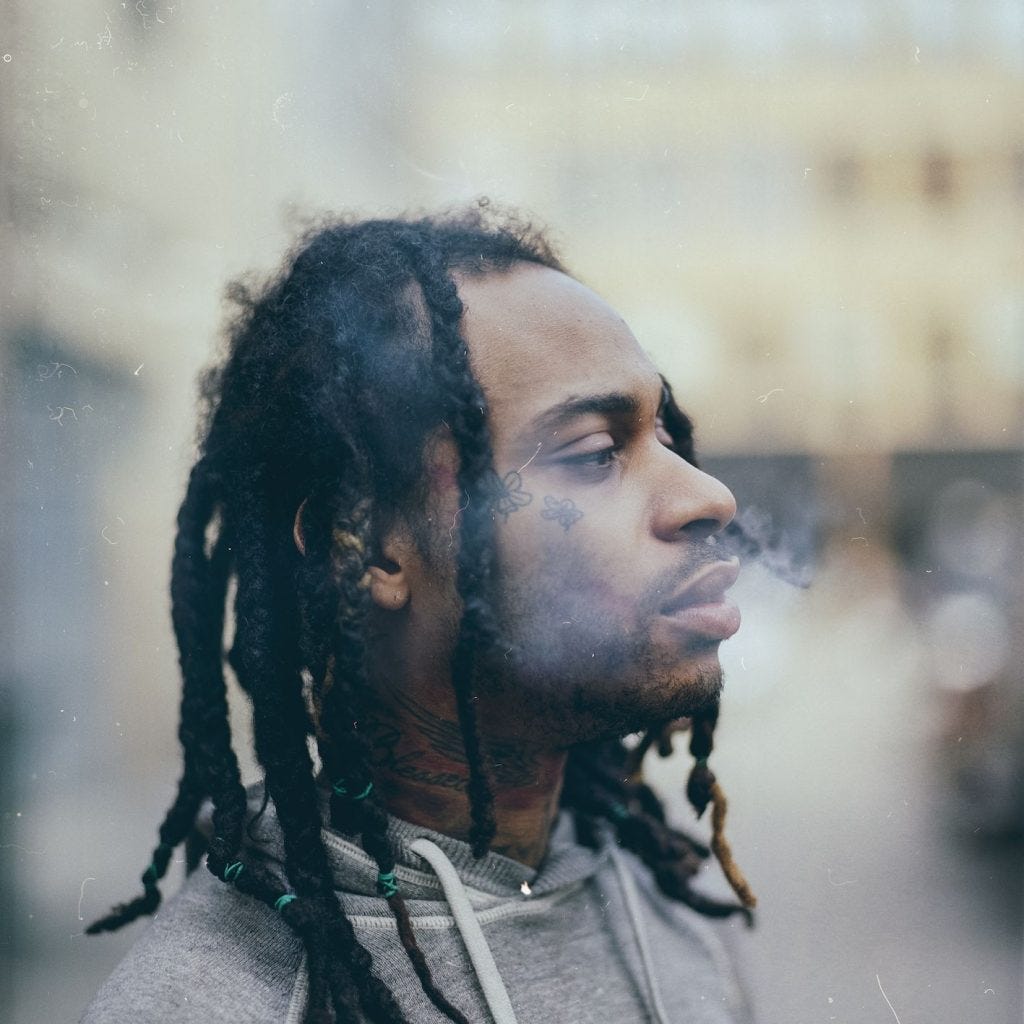 To write about rap—and, in turn, to capture some of its essence—is to be constantly humbled by your own literary inadequacies. Valee falls comfortably into the category of someone who packs a lot into very little. “Got her on her paws like a pit again / Ran off on your plug, oh you did him in / Oh nah, she ain’t from here, she not citizen,” purrs the G.O.O.D. Music rapper on the song’s second verse. His remarkable, convincingly simple flow, delivered in his trademark near-whisper, jumps out at you as text without even needing to hear the song.