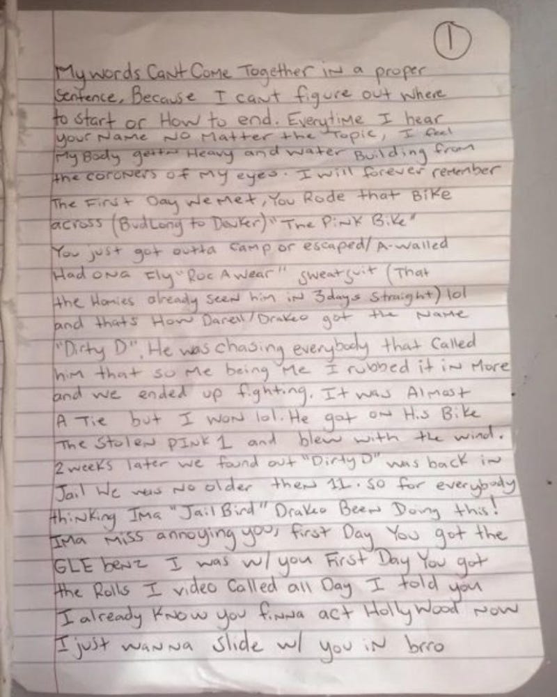 Drakeo the Ruler's best friend and collaborator Kellz pens a heartfelt letter from behind bars.