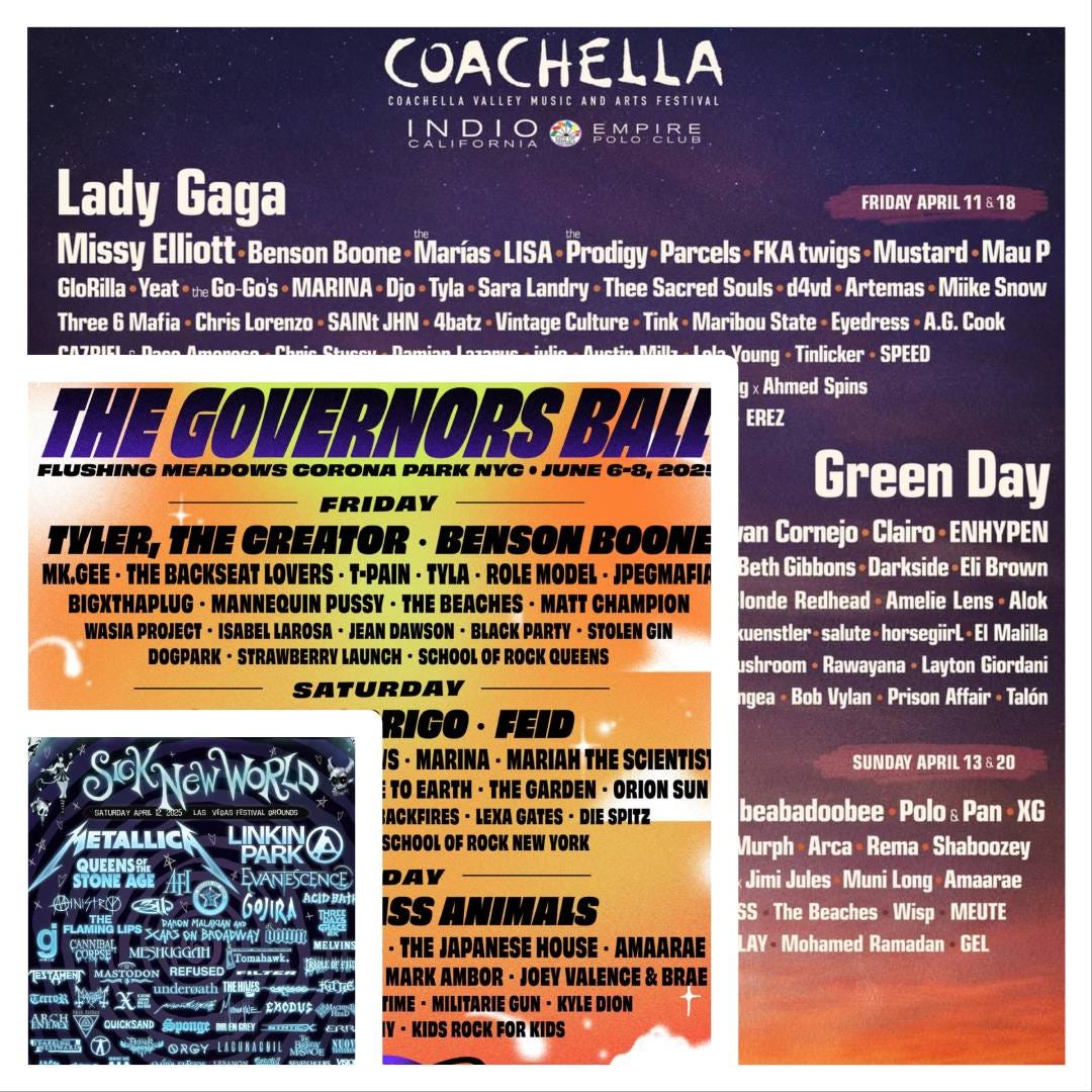 As we approach the end of announcement season, festival goers have now seen a majority of the lineups for the events taking place between now and mid-summer. For those interested in following trends within live music, each poster provides an abundance of tea leaves to sift through. After digging through them all, I came away with a shortlist of insights that will surely shape the stories this column covers in the months ahead. Here are eight thoughts on what the current festival slate forecasts about live music in 2025.