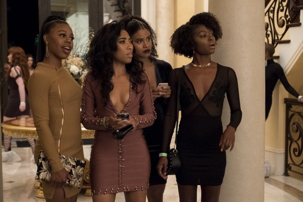 The tie-in to the “Robbin’ Season” theme is social media’s theft of our true identities. The set-up for the show is a girl’s night out for Van on New Year’s Eve, following her break-up with Earn. Van’s friend Candice, who has created a fake “business” relationship with a famous DJ to access a world unavailable to her, gets them the hook-up to a party at Drake’s mansion. As the girl’s scan social media prior to leaving, they already spot people posting IG pictures with Drake from the party.