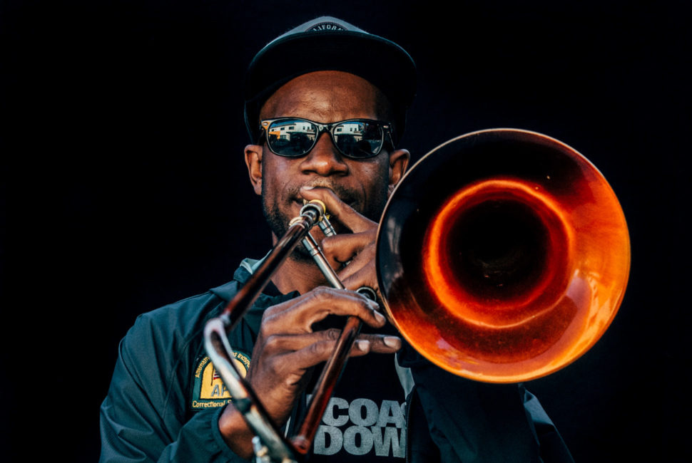 Featuring Mosley’s mean bass and Aaron Haggerty’s punishingly whacked drums, “The Instrumental Hip-Hoppa” has one of the baddest engines of any jazz song I’ve ever heard. Up top, you can practically hear the smoke coming off the scorching brass section as it blasts a catchy riff. Most songs, in fact, feature some kind of hook, offering a launching point from which the band venture into more freestyle play.