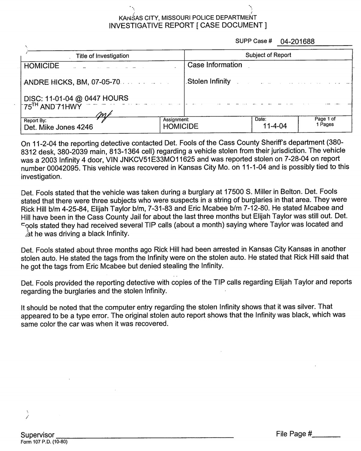 “That appeared to be a type error,” wrote KCPD Detective Mike Jones in an investigative report dated November 4, 2004.